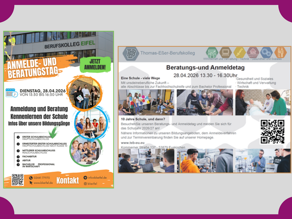 Am Dienstag, 28. April 2026, öffnen das Berufskolleg Eifel in Kall und das Thomas Eßer Berufskolleg in Euskirchen von 13:30 bis 16:30 Uhr ihre Türen…